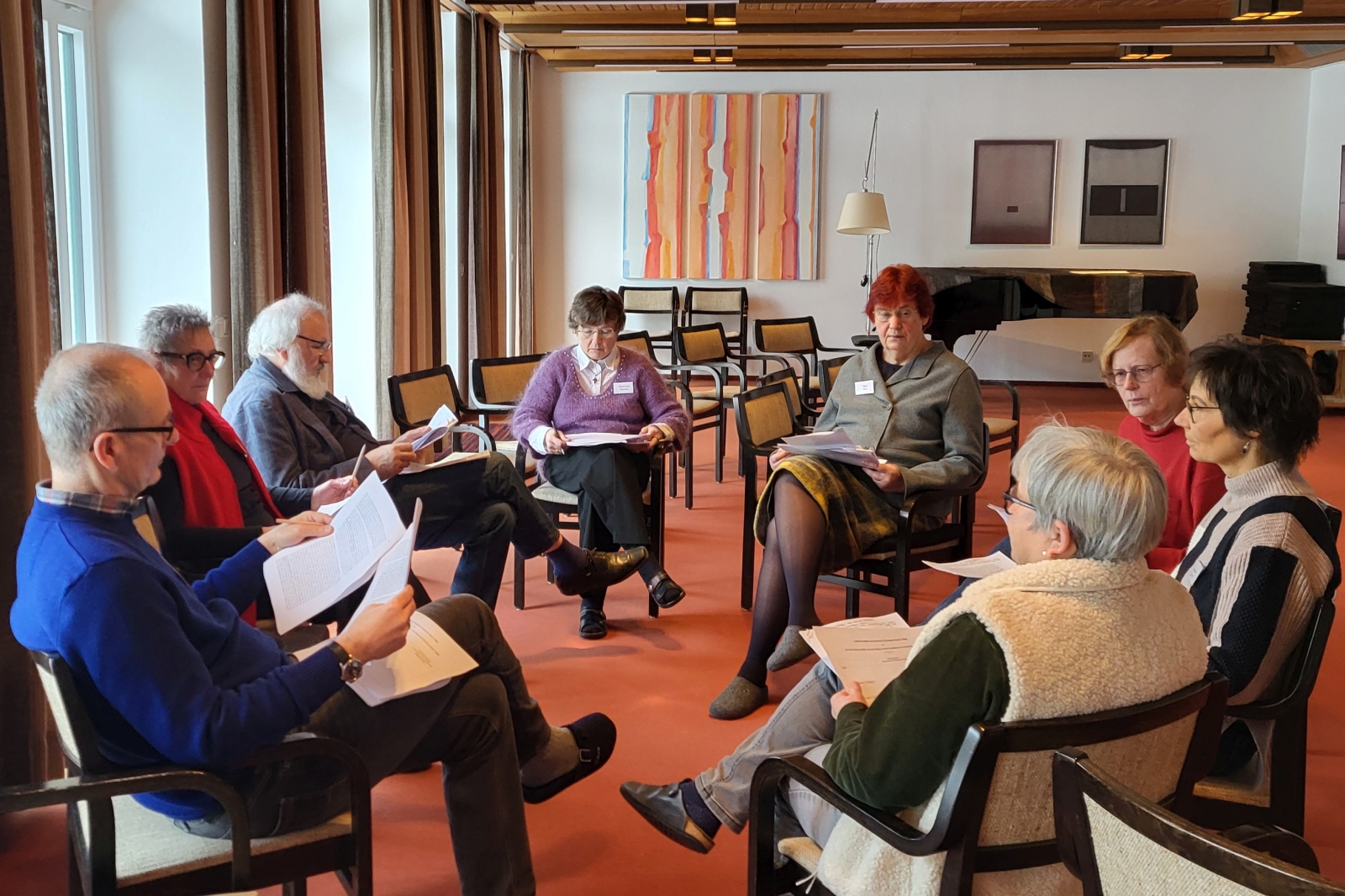 Der Samstag begann mit handfester Textarbeit. Unter der Leitung von Prof. Jennifer Wasmuth aus Göttingen wurden in drei Gruppen zwei Texte gelesen und diskutiert: Ein Text zur Sozialkonzeption der Russischen Orthodoxen Kirche und ein gemeinsamer Text orthodoxer Kirchen zum ihrem Sozialethos. Beide Konzepte wurden im Hinblick auf den von Russland geführten Krieg in der Ukraine erörtert. Stückweise waren die Teilnehmenden verstört über die Aufnahme und Ausführung des Gedankens von einem „gerechten Krieg“ in der Russischen Orthodoxie und fragten sich, wie man angesichts dieser Haltung noch Dialog führen kann. Die in der Ökumene erfahrene Referentin erzählte von kleinen Gesprächsformaten, an denen festgehalten wird, da sie viel Potential für künftige Entwicklungen haben. Insgesamt gebe es aber gegenwärtig eine Tendenz zur Spaltung und Vereindeutigung (= Verlust der Mehrdeutigkeit) in der Welt der Orthodoxie.