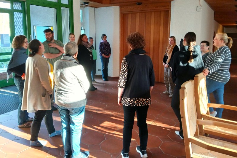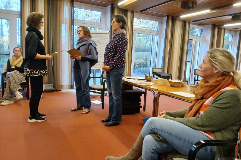Die Fortbildnerinnen Christiane Zimmermann-Fröb, Velbert und Dr. Delia Freudenreich, Paderborn vermittelten das religionspädagogische Konzept Godly Play mit hoher Kompetenz und teilten ihre Begeisterung. Ein stetiger Wechsel von Theorie und Praxis prägte die Tage, außerdem ein reger Austausch untereinander.