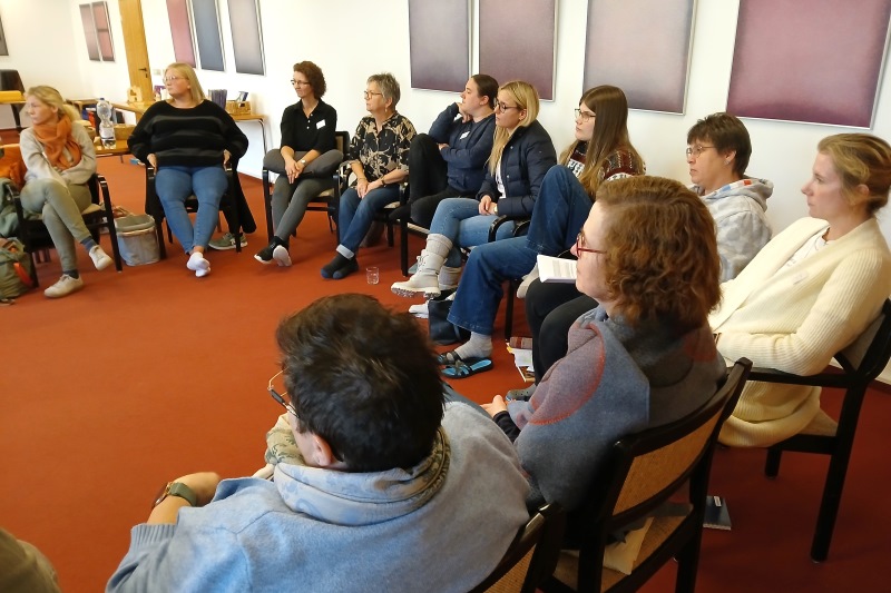 Zahlreiche Interessierte nahmen an der Ausbildung zur Godly Play-Erzählerin, zum -Erzähler teil, vor allem aus den Arbeitsfeldern Kita, Schule und Gemeinde.
