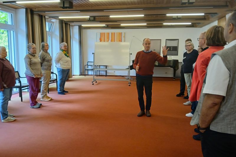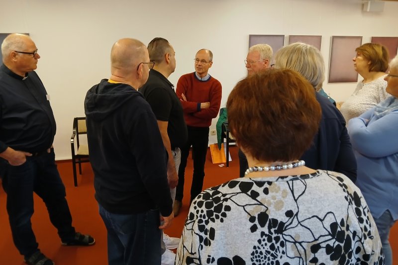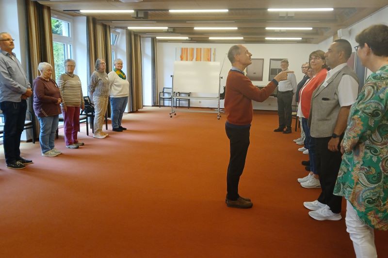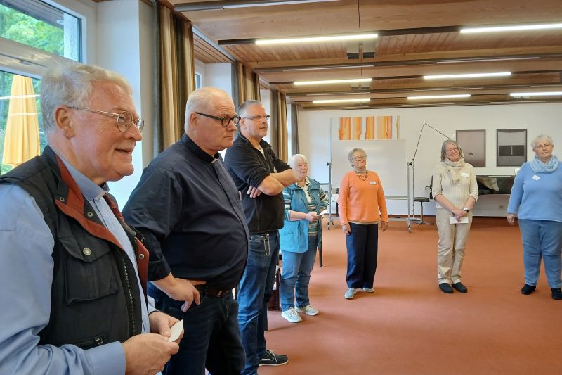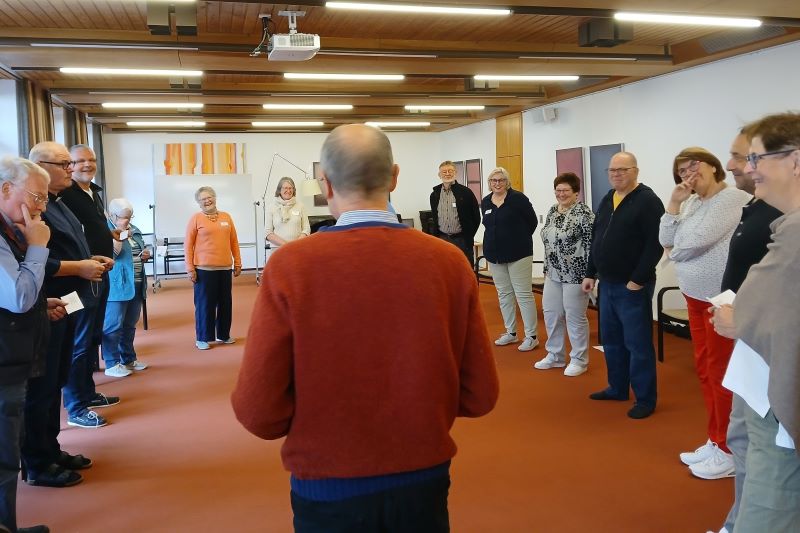 Mit Dr. Bernward Konermann wurde das Handwerkszeug für Gottesdienst und Verkündigung aufgefrischt. In einfachen Übungen für Körper, Geist und Seele wurden stimmige Formen für zeitgemäße christliche Zeugnisse gefunden.