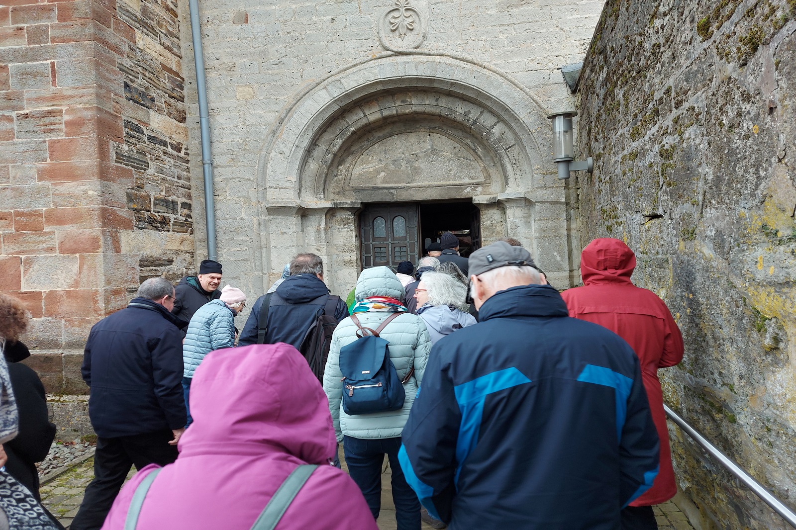 Anschließend wurde die Evangelische Kirche in Adorf (Gemeinde Diemelsee) besichtigt, wobei besonders ihre einheitlich romanische Architektur als gewölbte Pfeilerbasilika im gebundenen System mit drei Doppeljochen sowie der kräftig vorgebaute Westturm als Wehrturm thematisiert wurde. Den Abschluss der Exkursion bildete eine Führung von Hildegard Becker (Förderverein Flechtdorf) durch die ehemaligen Benediktiner-Abtei Flechtdorf. Beim Rundgang durch die romanische, teils frühgotische Klosteranlage und Klosterkirche wurden Alltagsleben der Benediktiner, materielles und geistiges Erbe sowie Fragen zur touristischen wie geistlichen Neunutzung des Ortes erörtert.