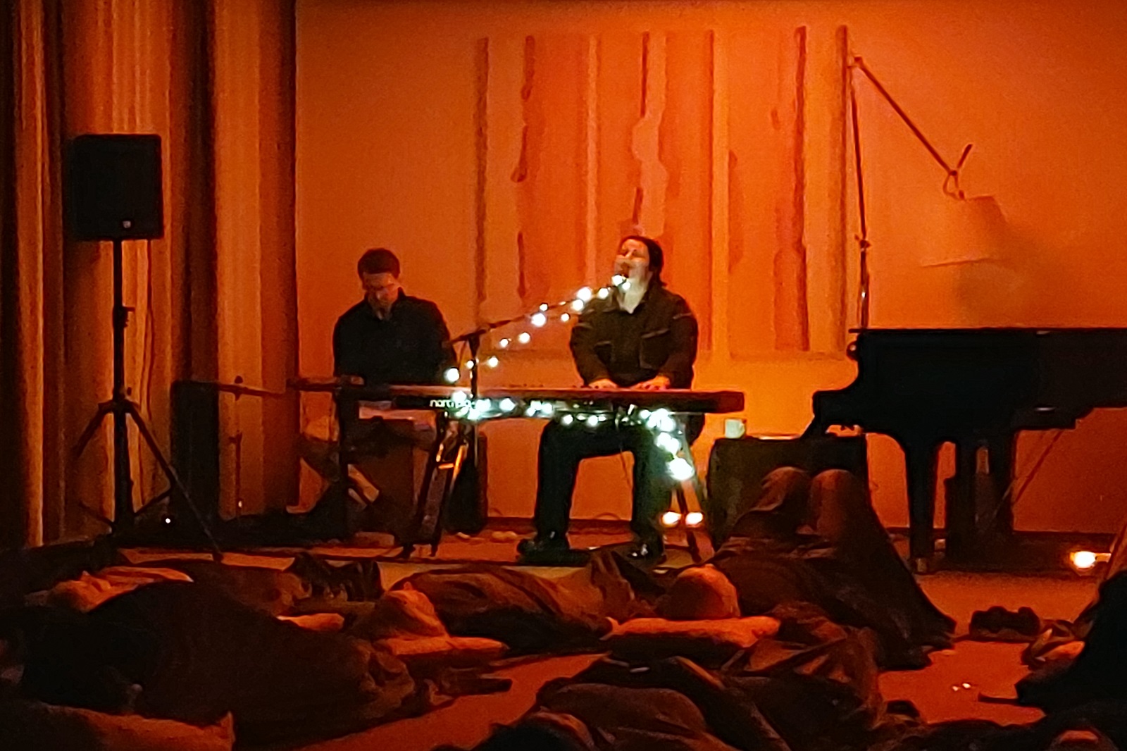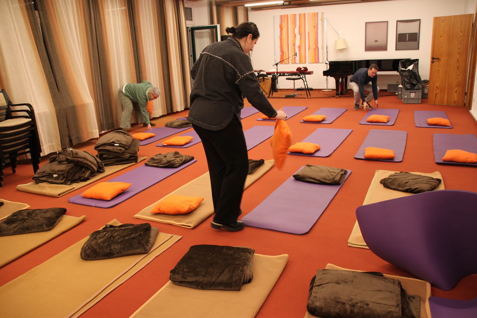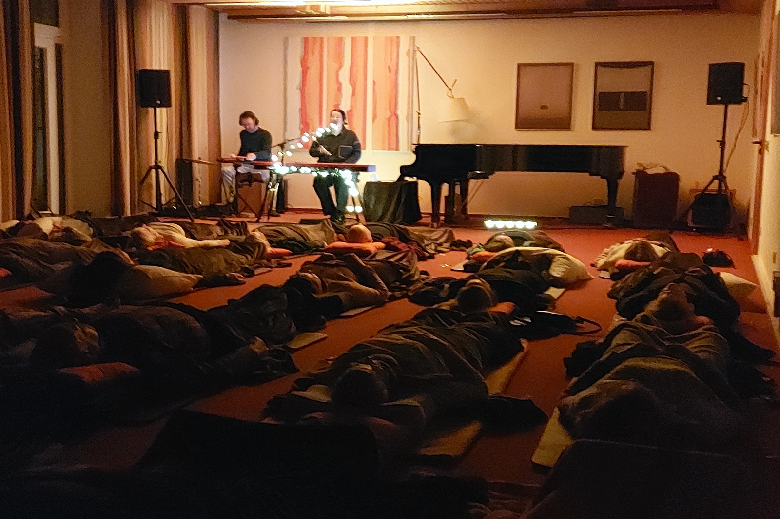 Am Abend wurde die Gruppe zum ersten Schlafkonzert auf der HEGGE eingeladen: Julia und Julian Buch hatten den großen Vortragsraum in einen gemütlichen Schlafsaal verwandelt. Julia Buch, Künstlerin, Sängerin, Komponistin, Erfinderin und Gründerin der Schlafkonzerte, beschenkte die Gruppe mit wunderbarer Musik, eigenen Liedern, die der Herzrhythmik entsprechen und zauberte etliche Teilnehmerinnen und Teilnehmer in einen wohltuenden Schlaf. Ein unvergessliches Erlebnis!