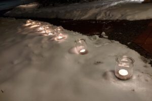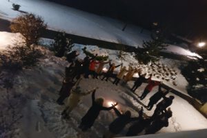 vorhanden war, wagte Ulrike Knobbe mit uns Schneetänze am Abend: Wir tanzten im Freien, im Schnee, auf der Terrasse, in der Dunkelheit.