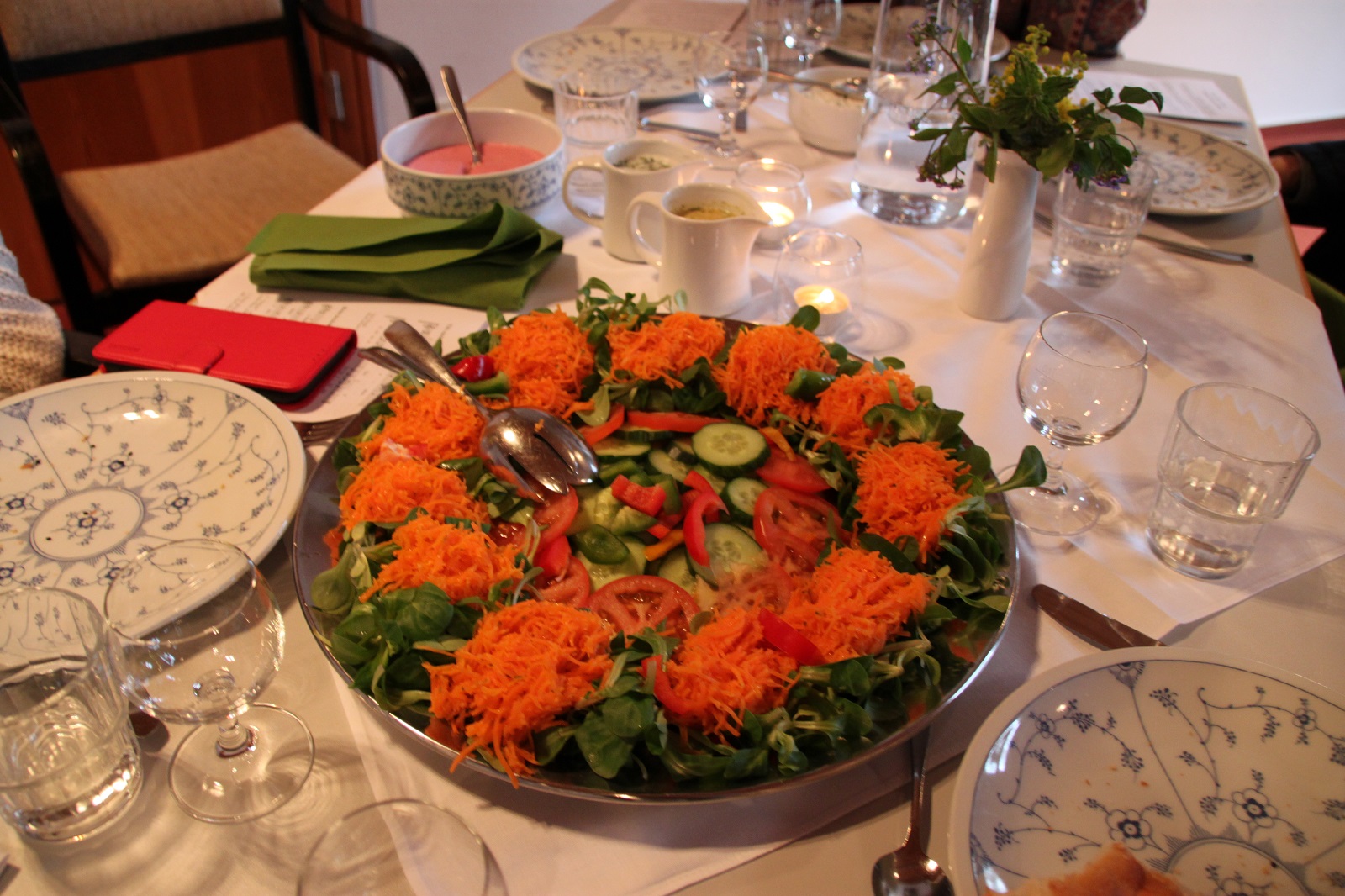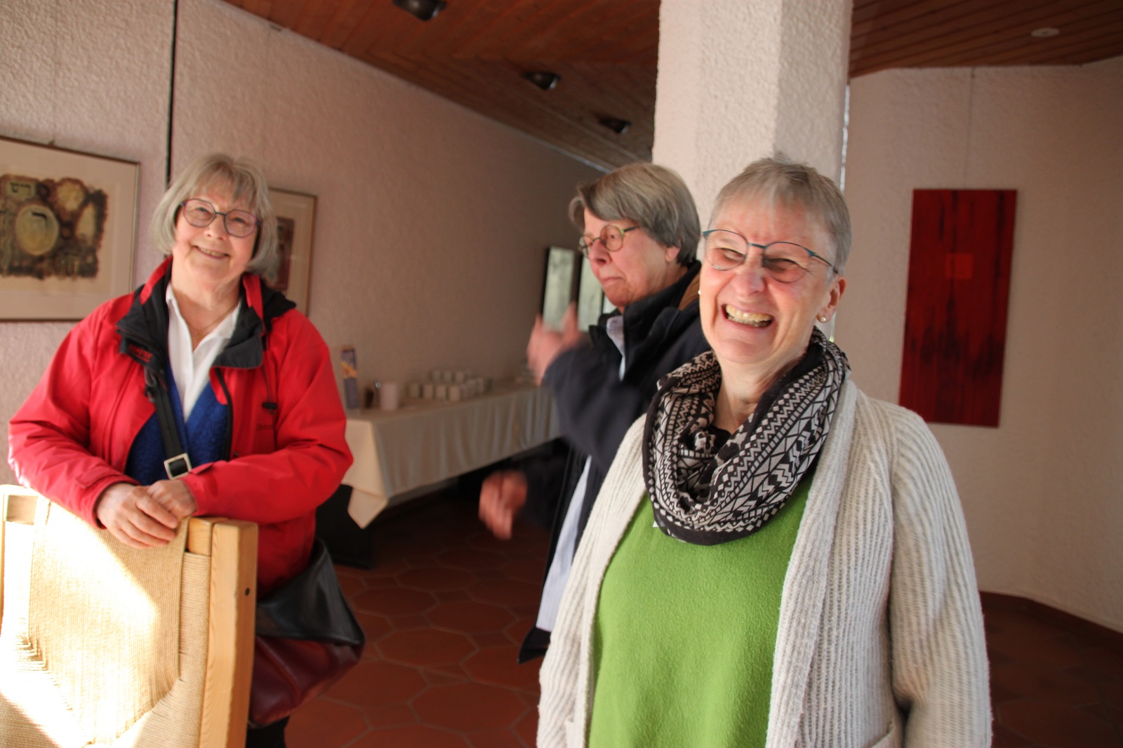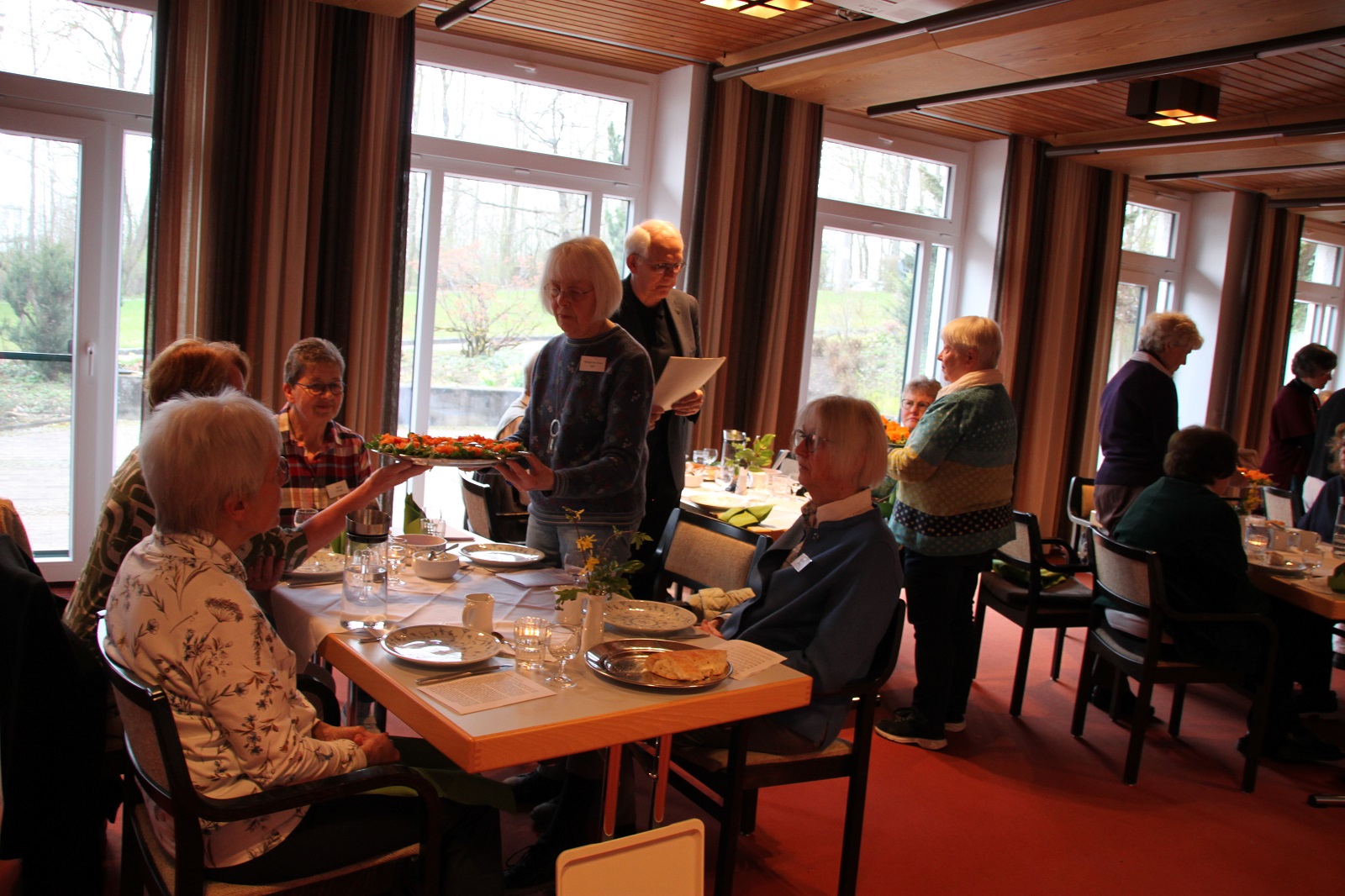 Am Nachmittag standen gemeinsame Vorbereitung und Singeprobe für die Mahlfeier im Zentrum. Die Mahlfeier selbst war dann ein Fest der Gemeinschaft: Sie fand an sieben Tischen statt, musikalisch getragen von Monika Kasper, Josef Verwimp, Marianne Stommel und Damian Lazarek mit Tafelmusik und Festleuchter, Schrifttexten, Schriftgespräch, Gebet und Gesang. Das Essen war lecker, es wurde von Tischdiener*innen aufgetragen, jede Speise wurde gesegnet, die Stimmung war fröhlich und zugleich andächtig.