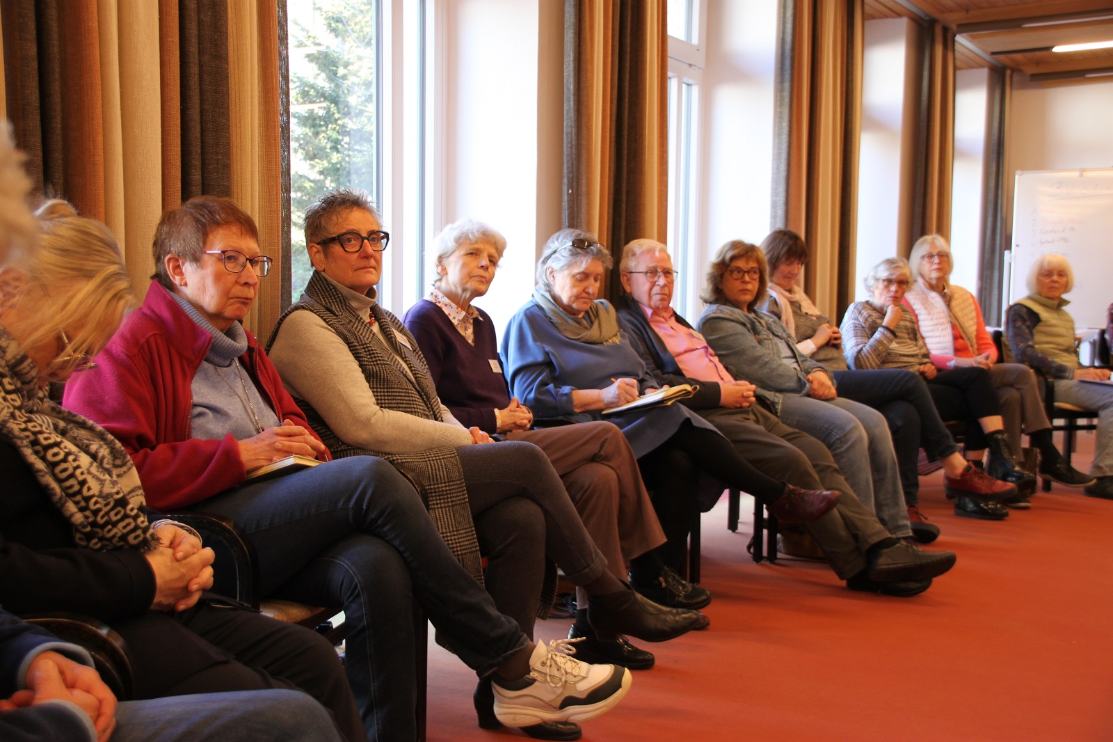 Im anschließenden Plenum öffnete Pastor Auffenberg den Raum für ein intensives Gespräch. Aus den schriftlichen Notizen heraus entwickelte sich ein Dialog, der sowohl persönliche Offenheit als auch gemeinsame Fragestellungen sichtbar machte — von existenziellen Ängsten bis hin zu konkreten Handlungsideen für Kirche und Umwelt.