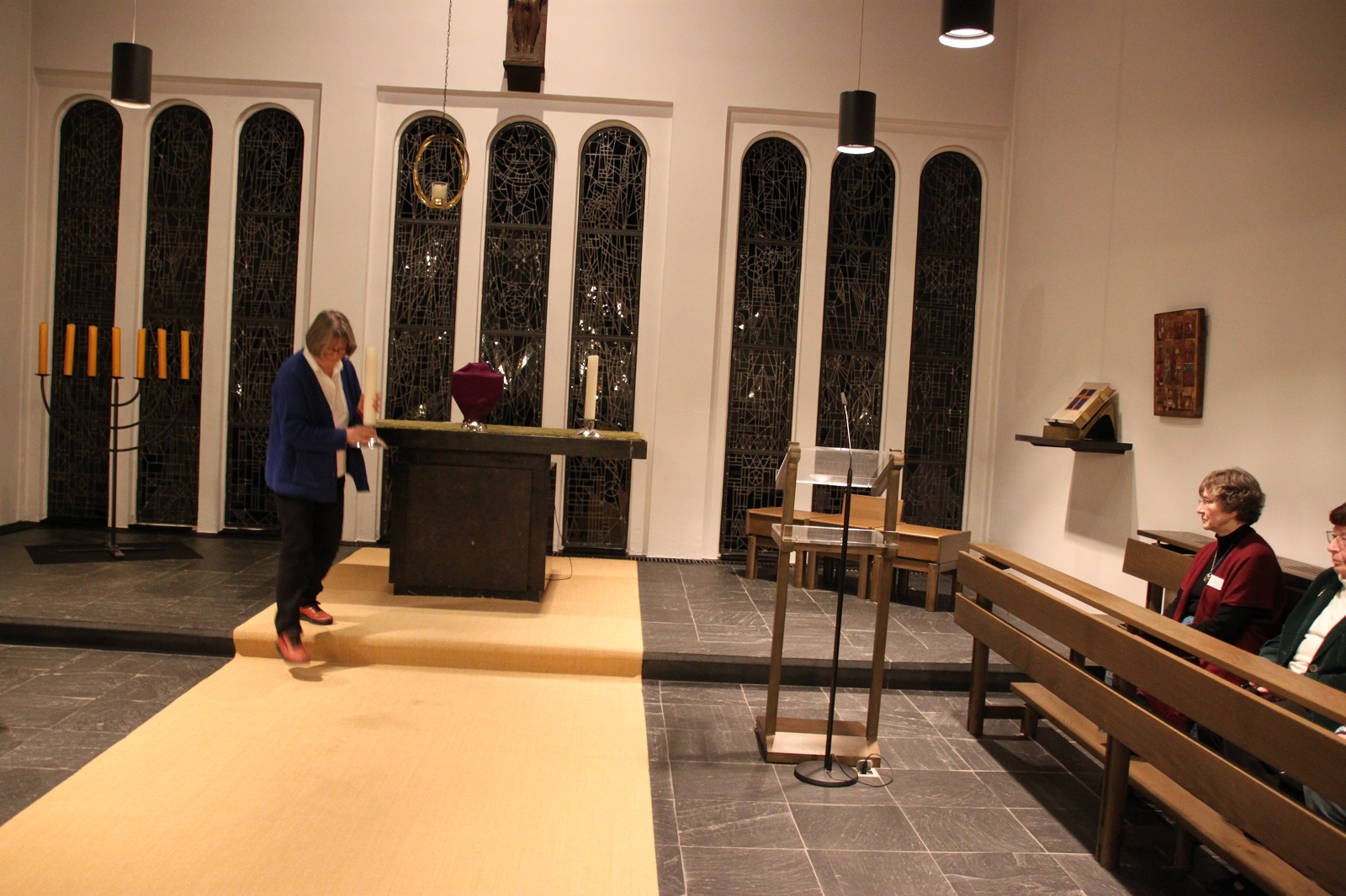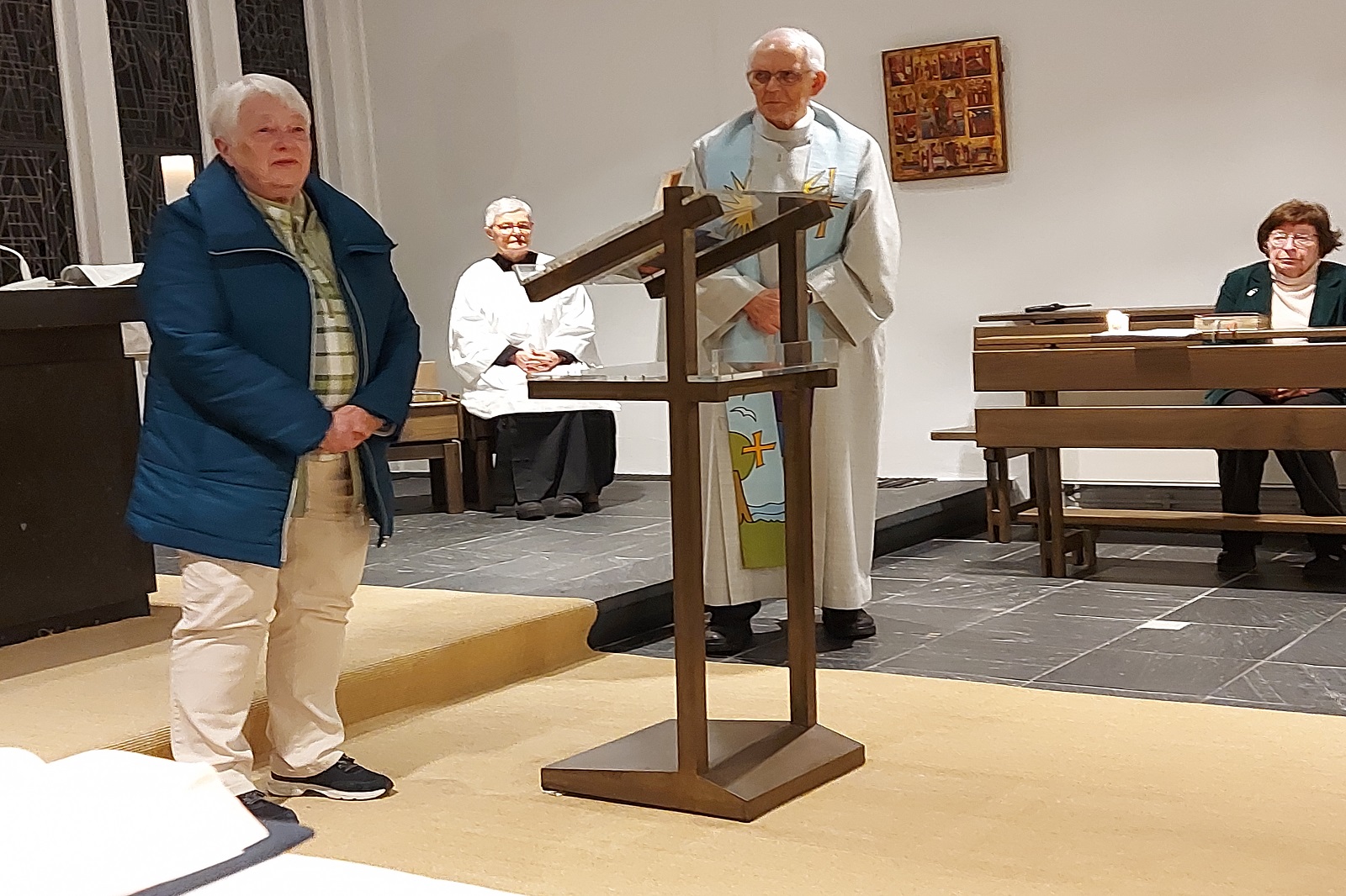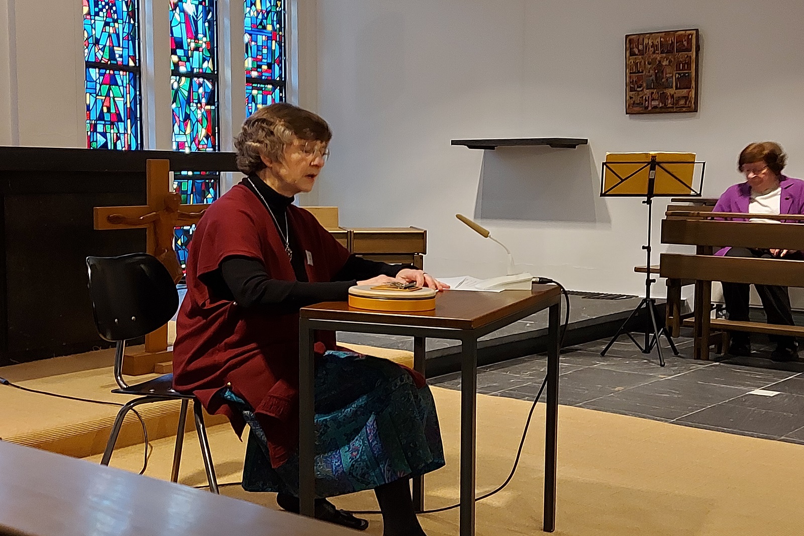 Am Karfreitagabend folgte in der Kapelle eine Autorinnenlesung von Marianne Stommel: eigene Texte zu Trauer und Abschied, unterbrochen und bereichert durch Flöten‑ und Cellomusik — ein eindrücklicher Abschluss für den Tag.
