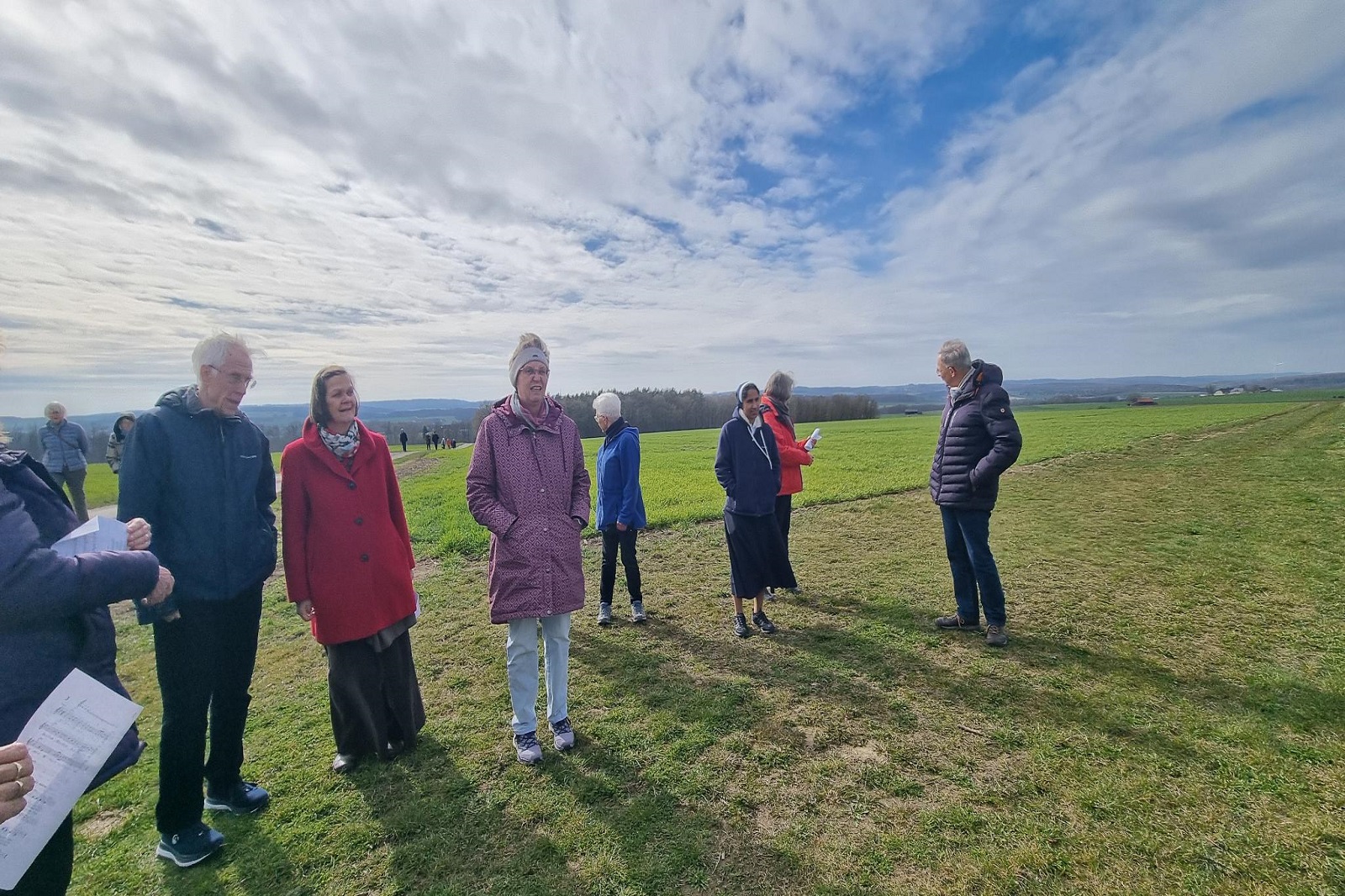 Am Nachmittag wurden einige der neu entstandenen Psalmen in die Liturgie in der Kapelle eingebracht; andere begleiteten den gemeinsamen Kreuzweg zum Kreuz „Geduld“. Auf dem Weg gab es Stationen mit Gebeten und Liedern — eine intensive, verbindende Einheit, in der die Gruppe noch enger zusammenfand.