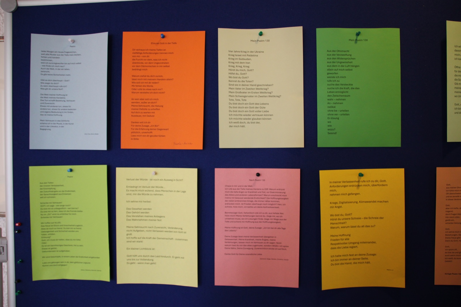 Den Karfreitagvormittag leitete Damian Lazarek: Thema war Psalm 130 — seine Struktur wurde erläutert, dann arbeiteten die Teilnehmenden in Kleingruppen daran, eigene Psalmen zu verfassen. Die Atmosphäre war konzentriert und kreativ; die Gespräche tiefgehend, die entstandenen Texte sehr gelungen und berührend.