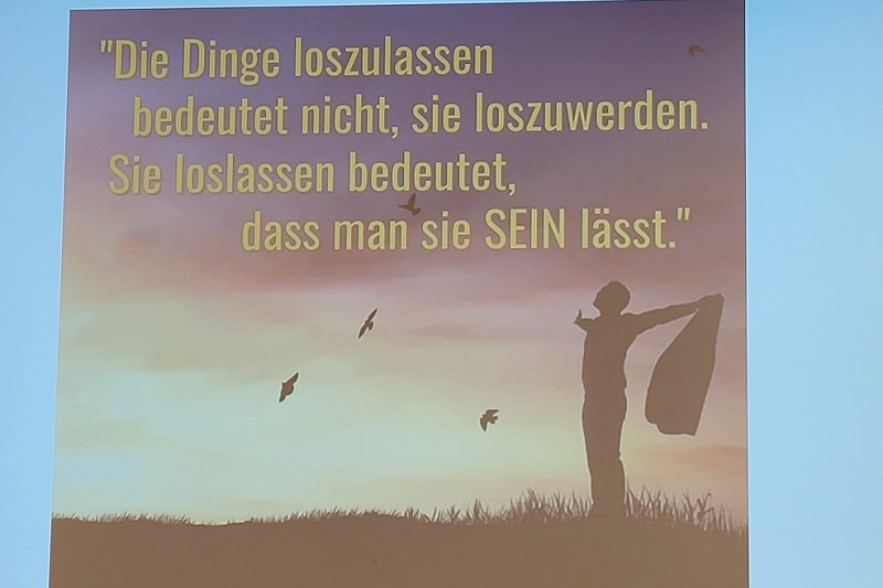 Doch warum fällt es vielen von uns so schwer, belastende Dinge loszulassen, etwas zuzulassen und auch zu überlassen? Wie können wir uns unvoreingenommen verhalten? Wie können wir bei dem Überangebot an Weltgeschehen und den damit verbundenen vielen schlechten Nachrichten die Fassung bewahren und handlungsfähig bleiben? Was brauche ich dazu, Belastendes loslassen und Wohltuendes zulassen zu können? In dem dreitägigen Seminar haben wir diese Fragen in den Mittelpunkt gestellt und uns der Gelassenheit auf verschiedenen Wegen genähert.