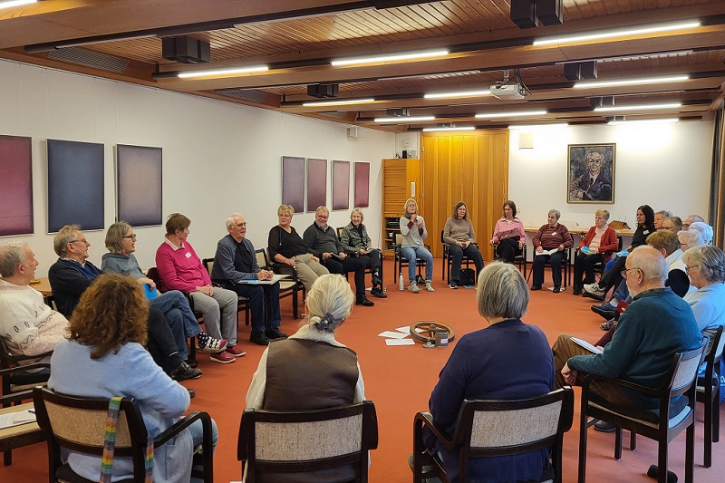 Am Samstagabend berichtete Ullrich Auffenberg im Rahmen einer Lesung aus seinem aktuellen Buch „Sorgt euch nicht! 36 Anstöße zur Gelassenheit“. Neben den Teilnehmer*innen, waren auch rund 15 Gäste von Außen zur Lesung gekommen.